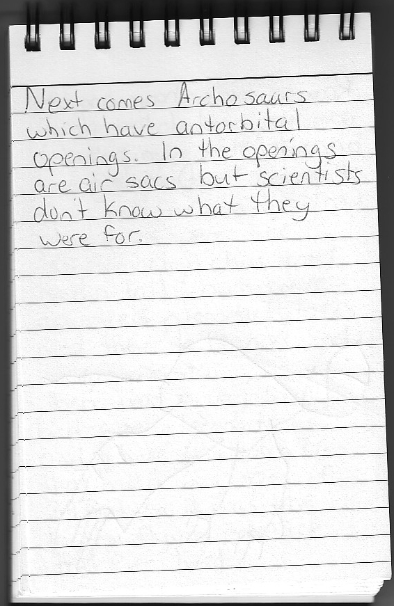 Next comes Archosaurs which have antorbital openings. In the openings are air sacs but scientists don't know what they were for. Rauisuchids have antorbital openings, and I like them because there is a puzzle of one in the Discovery Center. |
